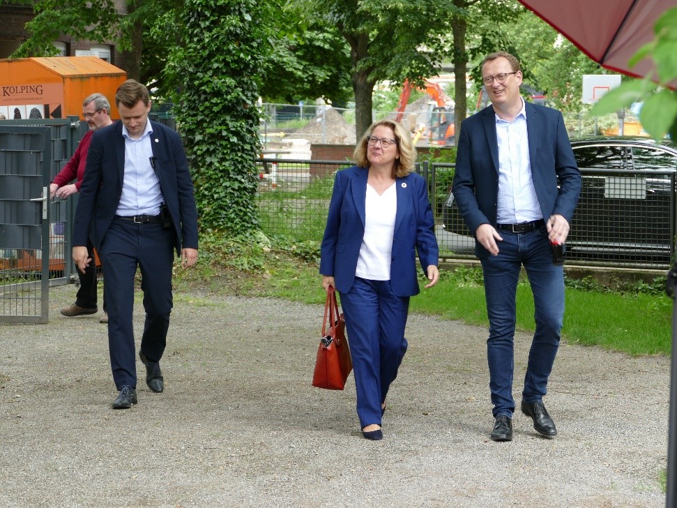 Pünktlich um 17 Uhr traf die Bundesministerin ein, wenig später auch Tobias Cremer, als Kandidat für das Europäische Parlament.