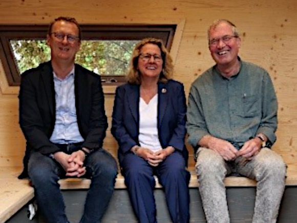 Ob der Himmel dicht bleiben wird?, fragten wir uns gespannt. Auf Einladung von Oliver Kaczmarek (MdB) hatte sich Svenja Schulze, Bundesministerin für wirtschaftliche Zusammenarbeit und Entwicklung, für Montag den 27.05.24 in Kamen angesagt. Vor dem Tiny House im Pfarrgarten trafen sich – organisiert von Ulrike Faulhaber - die fair friends Anja Sklorz, Jutta Eickelpasch und Ophélie Lespagnol, weiterhin Brigitte Langer und Bilitis Naujoks von Pro Mensch e.V. und Bernhard Nake, Heinrich Oest, Berislav Župarić und Meinolf Wacker vom go4peace e.V..