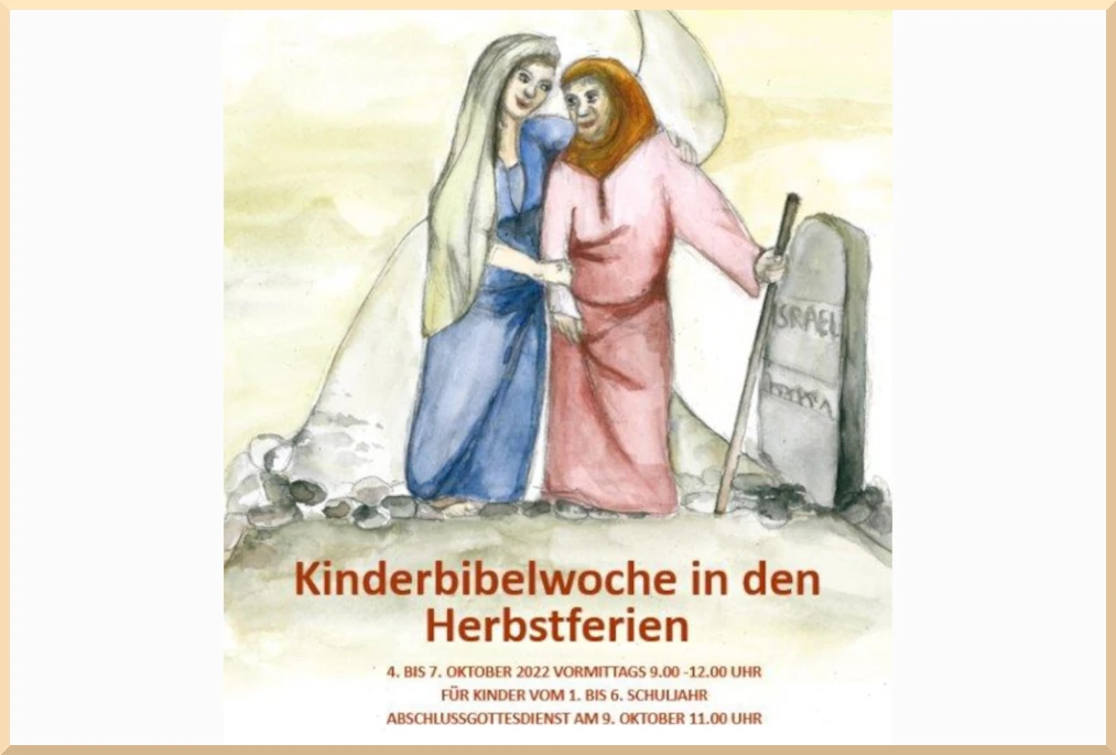Auch in diesem Jahr findet in der ersten Herbstferienwoche für Kinder vom 1. bis 6. Schuljahr die Ökumenische Kinderbibelwoche statt. Von Dienstag, 4.10., bis Freitag 7.10., kommen wir täglich um 9.00 Uhr im Neuen Gemeindehaus Kamen, Schwesterngang…